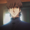 [Still keeping his chin lowered, Kirei slowly walks to a chair near the closed casket—in fact, it's in the first row—and sits. He looks very much like he wants to cry.